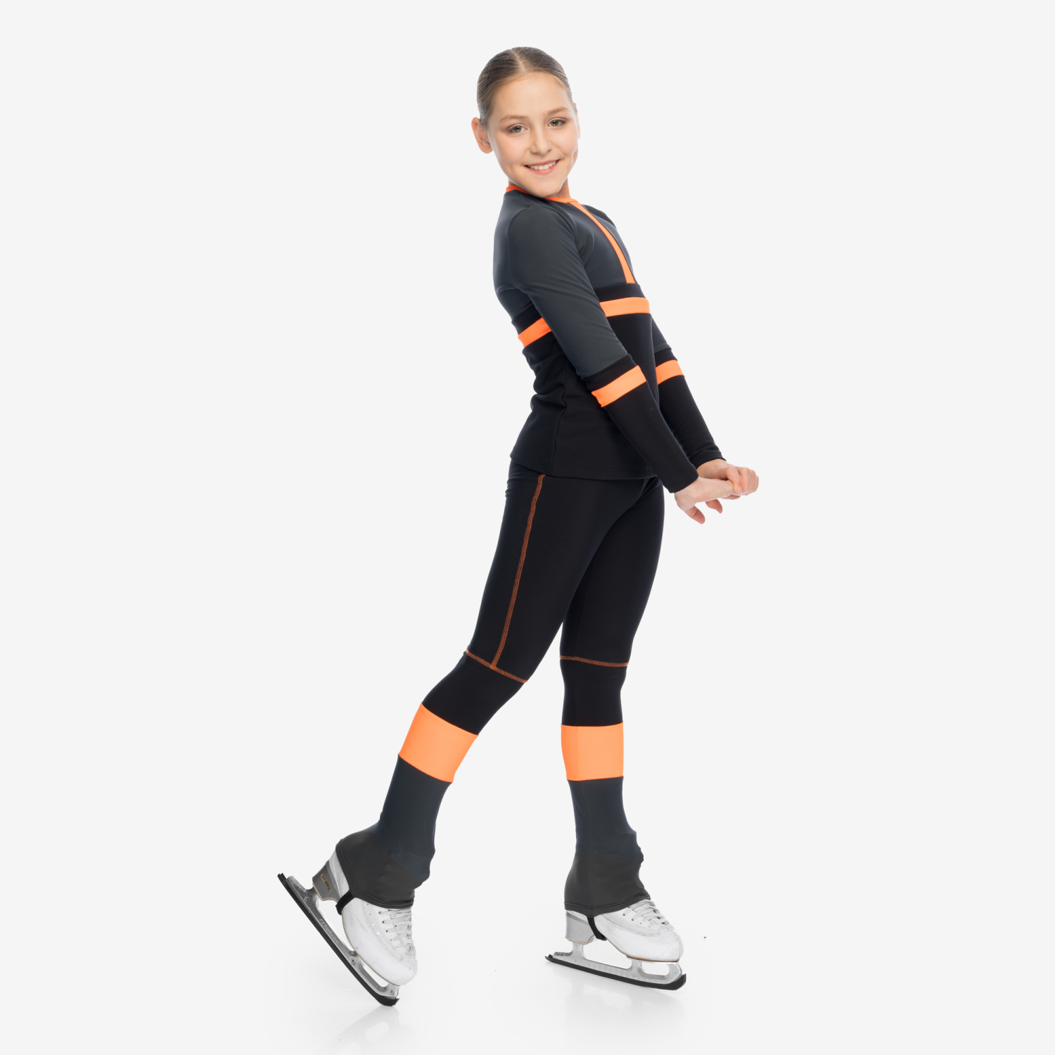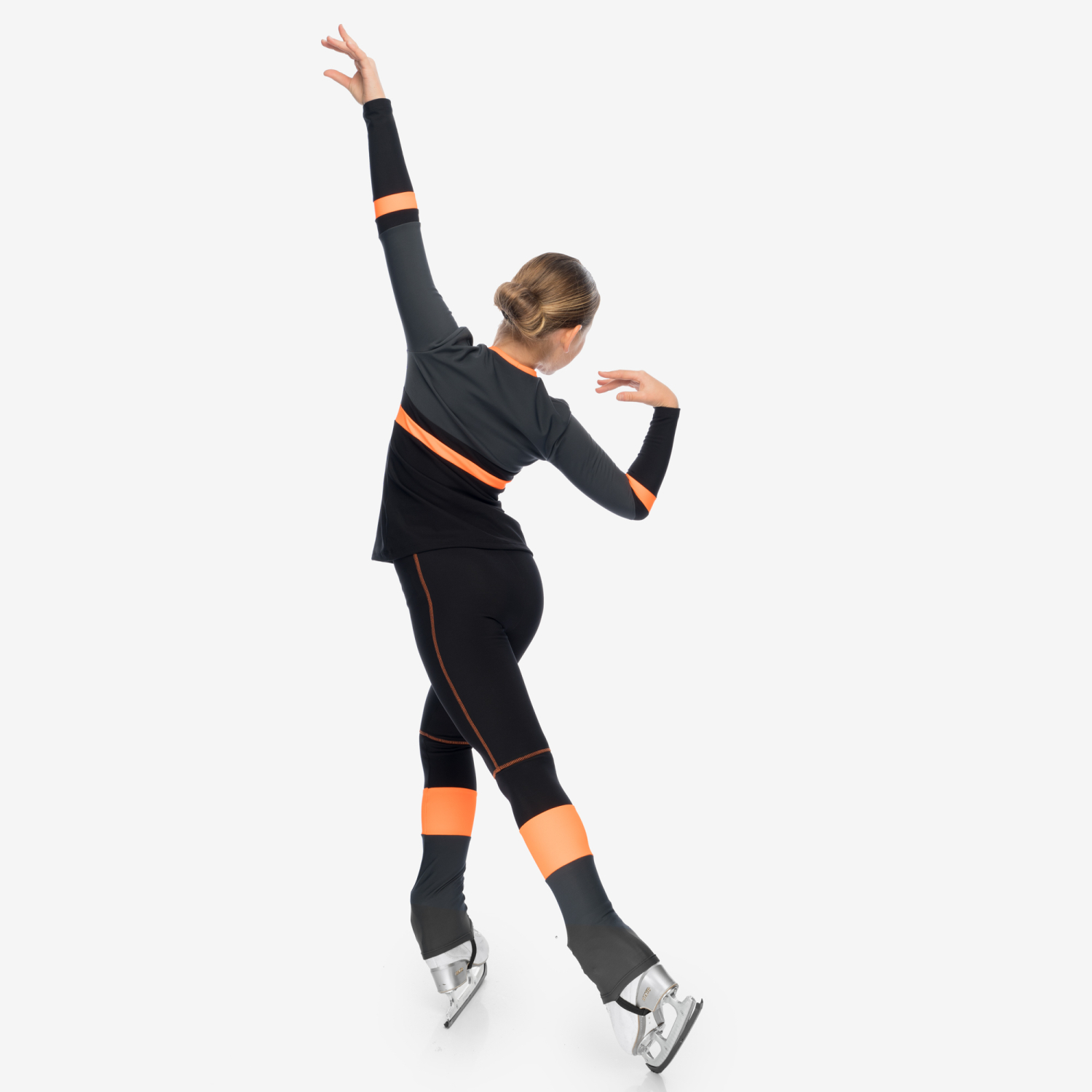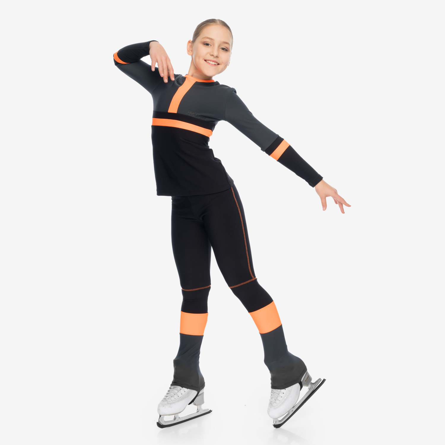 The DANCE CORAL thermal skating outfit combines elegance with athletic performance. The relaxed-fit top features coral color blocks that elongate the silhouette and add visual rhythm to movement.