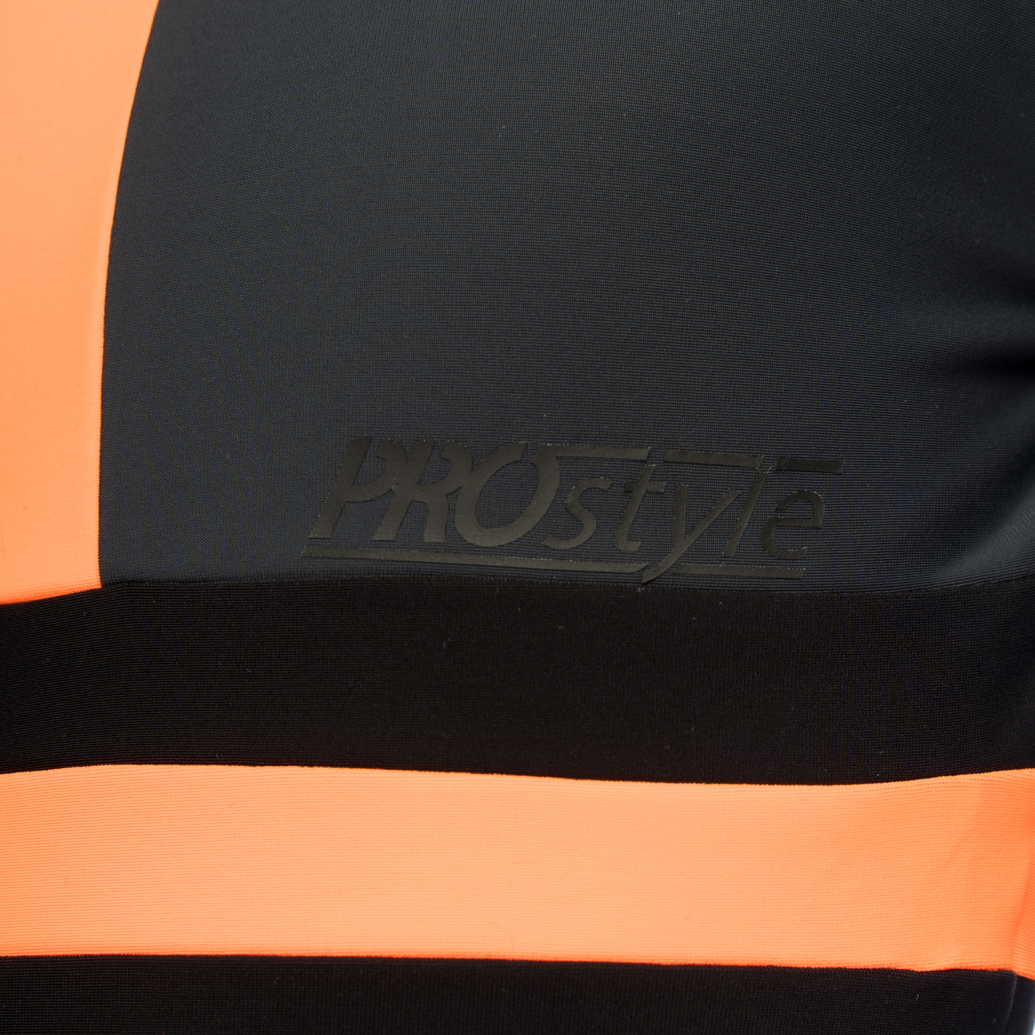 Black base with coral vertical and sleeve accents